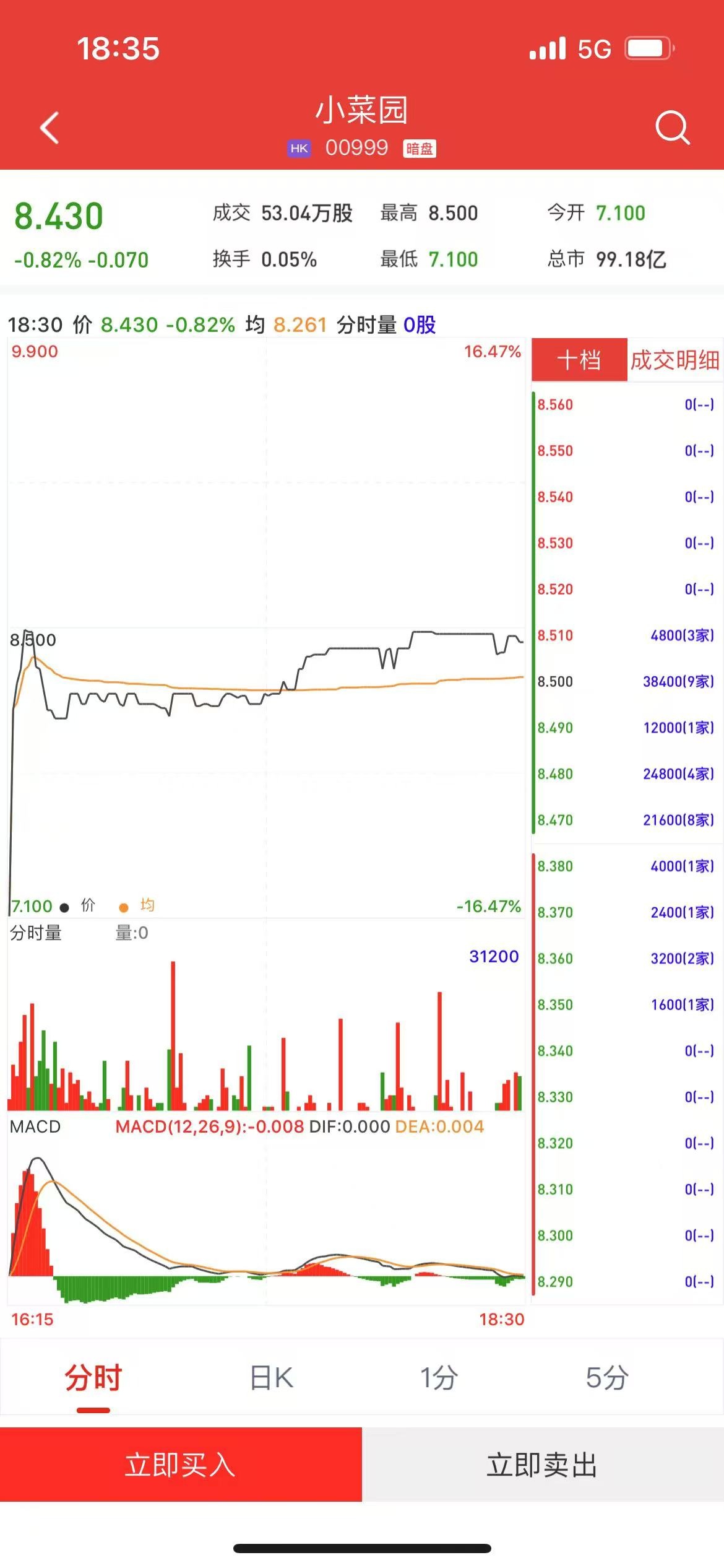 智通财经APP获悉,小菜园(00999)将于12月20日(周五)在香港挂牌。截至收盘,利弗莫尔证券暗盘交易显示报价8.43港元,较招股价8.5港元下跌0.82%,每手800股,不计手续费,每手亏56港元。