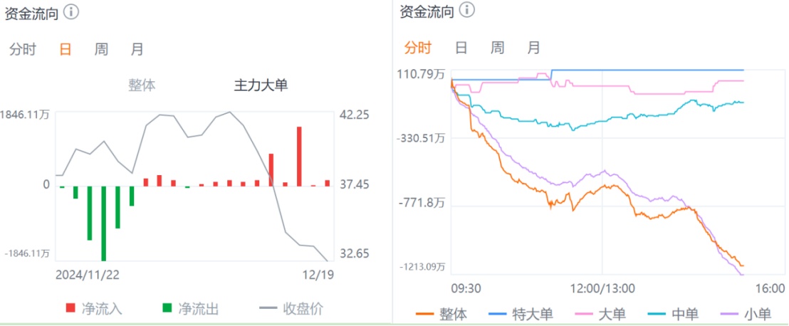 不过值得一提的是,虽然出现股价“六连跌”但在资金面上,康诺亚确实持续净流入状态。12月17日,也就是康诺亚近期成交量最大的一天,其主力大单当日净流入1482.56港元。每日资金流向上,康诺亚也基本呈现大单、特大单买入,小单卖出状态。