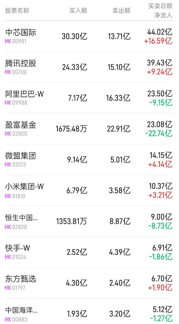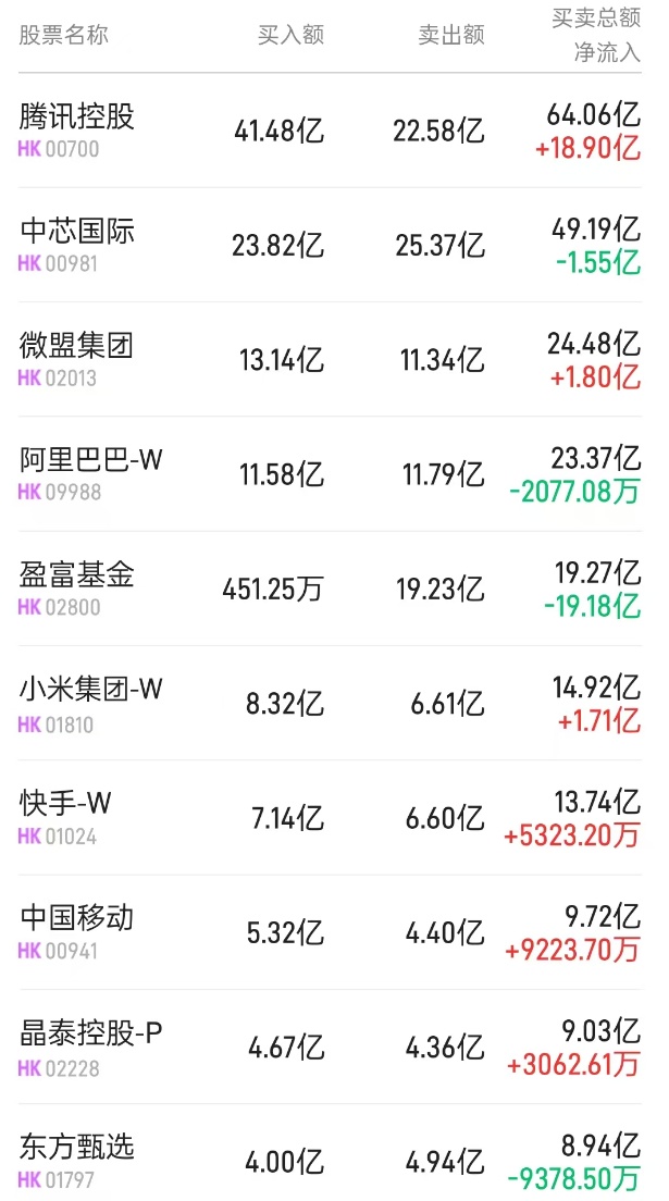 此外,小米集团-W(01810)获净买入4.91亿港元,而中海油(00883)遭净卖出1.27亿港元。