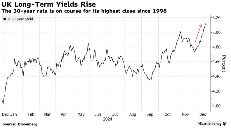 利率前景不明朗再次对英国政府债券投资者造成打击,他们已经在2024年亏损超过4%,因为明年债券发行量将增加。问题的核心是政策制定者将如何应对英国通胀压力持续和经济增长乏力的困境。