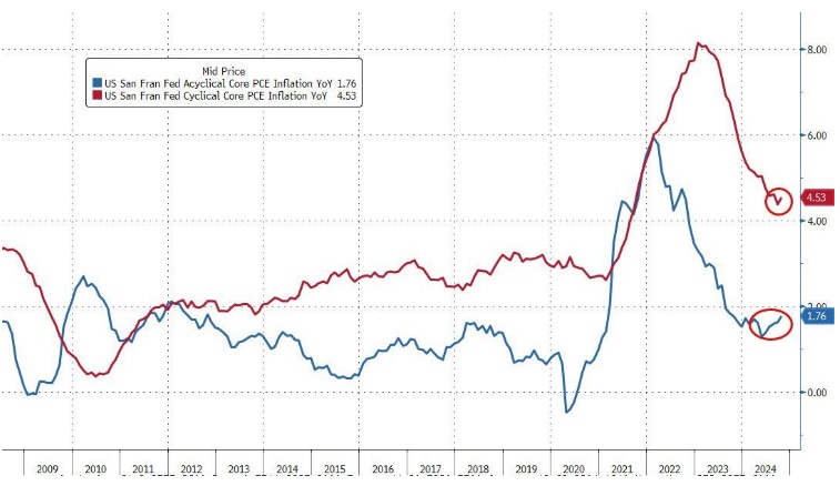 而且根据旧金山联储报告,周期性和非周期性通胀因素都在再次上升。旧金山联储主席戴利在周五公布这些数据之前表示,她对政策制定者明年两次降息的预期中值“非常满意”,并强调美联储可以采取更缓慢的方式。