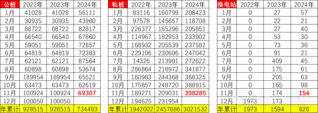 2024年1-11月公共充电桩数量较2023年底增加73万个,下降11%的走势不强。
