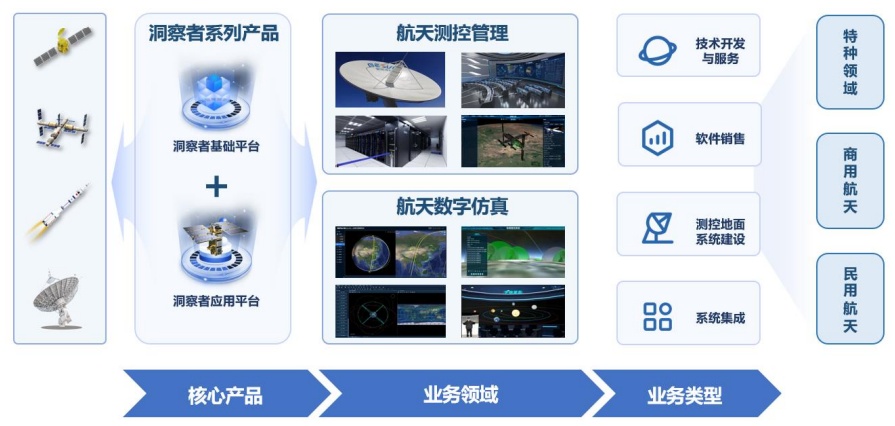 招股书披露,星图测控是围绕航天器在轨管理与服务,专业从事航天测控管理、航天数字仿真的国家高新技术企业。公司依托航天器高精度轨道、姿态、控制计算,测控资源智能筹划与调度,卫星全生命周期健康管理、测控装备一体化设计与智能管控等核心技术,研发了具有完全知识产权、国产自主可控的洞察者系列产品。