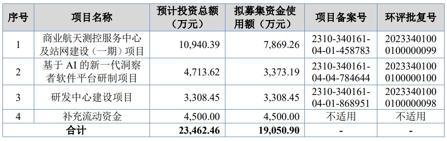 据了解,星图测控募集资金扣除发行费用后拟用于以下列项目: