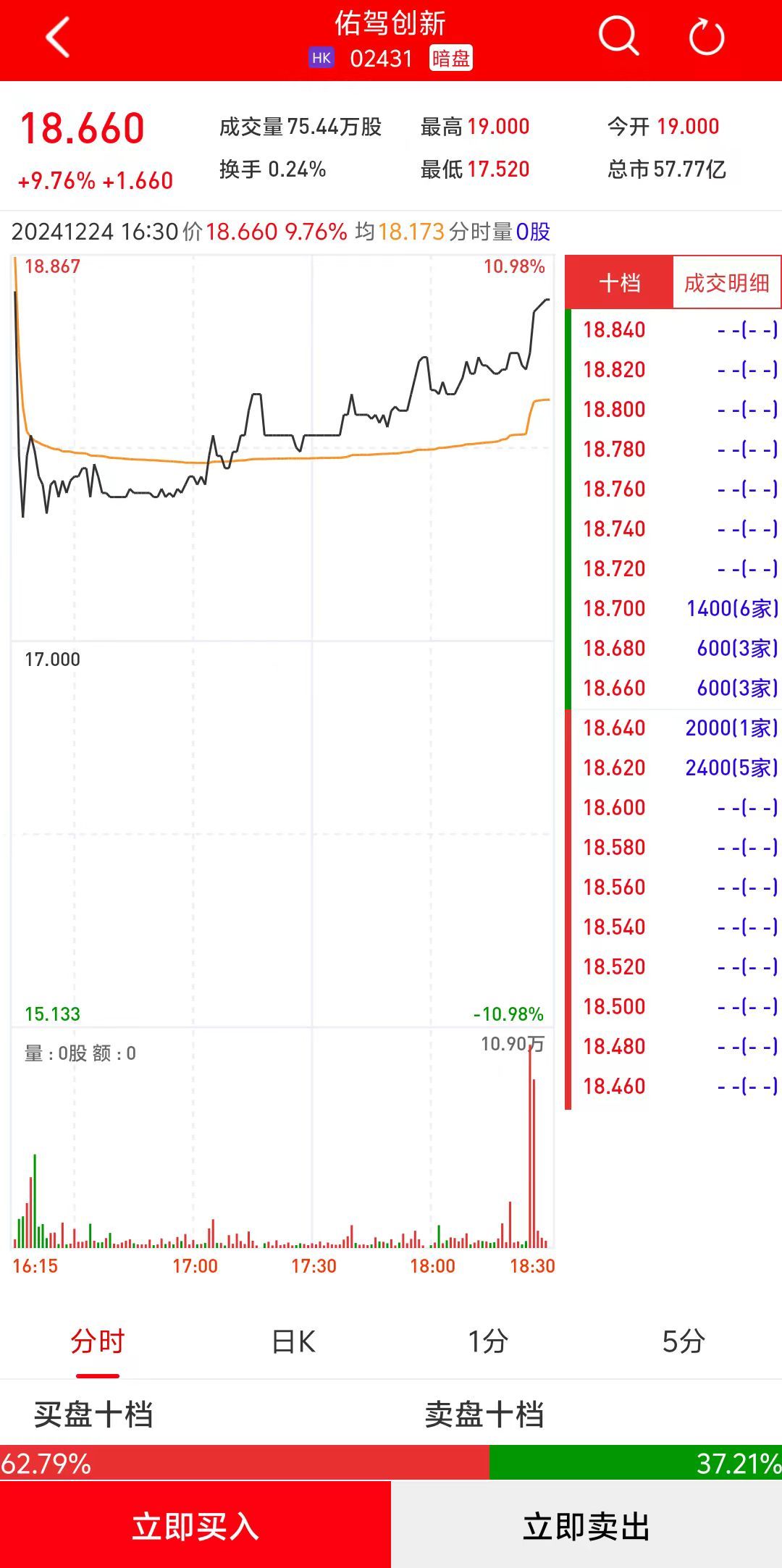 智通财经APP获悉,佑驾创新(02431)将于12月27日(周五)在香港挂牌。截至收盘,利弗莫尔证券暗盘交易显示报价18.66港元,较招股价17港元上涨9.76%,每手200股,不计手续费,每手332赚港元。