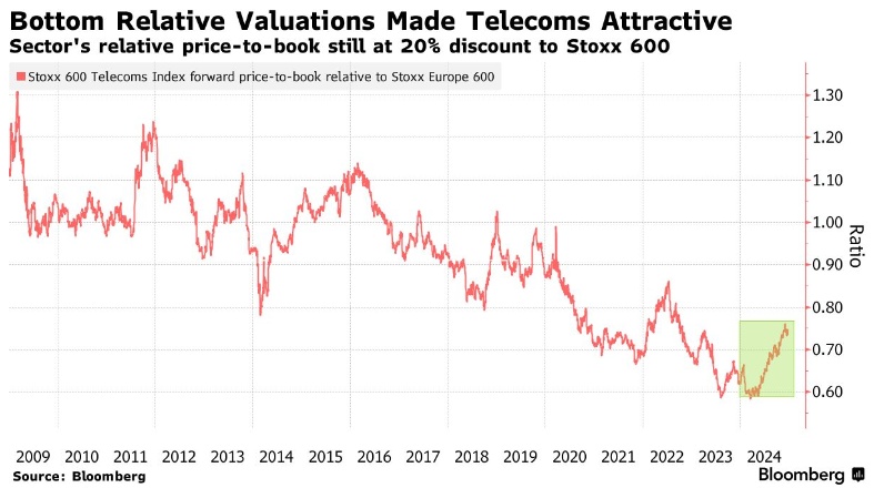除了涵盖银行与保险市场的大金融板块,电信行业也是2024年欧洲股市表现最佳的股票板块之一,在这一年里,该行业也经历了繁忙的并购交易活动。