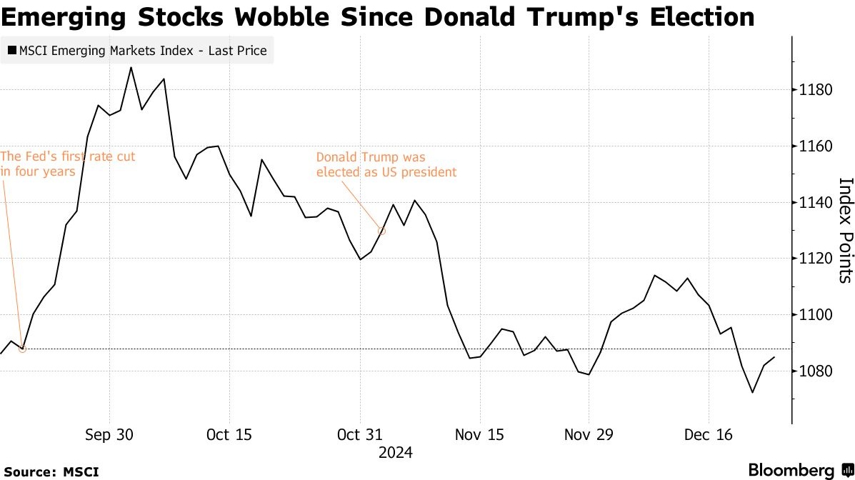 然而,新兴市场并非全面飘红。尽管新兴市场的主权和公司美元债券在2024年的回报率约为7%,显示出一定的市场吸引力,但发展中国家仍面临诸多挑战。特朗普当选总统后威胁提高关税、地缘政治紧张局势以及通胀持续上升的迹象,都给新兴市场带来了不小的压力。尽管如此,一些投资者仍对新兴市场持乐观态度,认为新兴市场公司的基本面稳健,将有助于它们在不确定的环境中稳步前行。