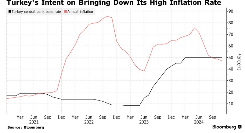 智通财经APP获悉,土耳其央行在消费者通胀出现明显缓解迹象后,近两年来首次降息,并表示未来的宽松措施将取决于物价数据。在土耳其央行行长法提赫·卡拉汉的领导下,该央行的货币政策委员会在连续八个月保持政策不变后,于周四将该国政策利率——一周回购利率从50%意外下调至47.5%。