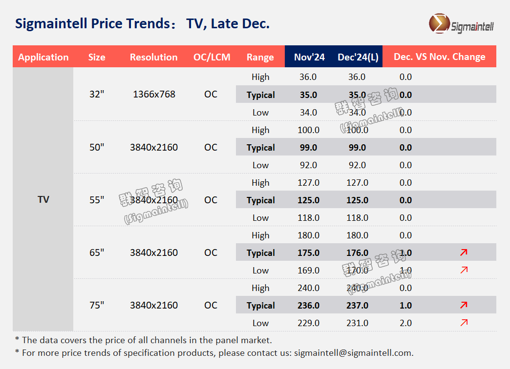 大尺寸方面,品牌备货需求强于预期,带动面板供需关系趋紧,预计12月大尺寸面板均价启动上涨。