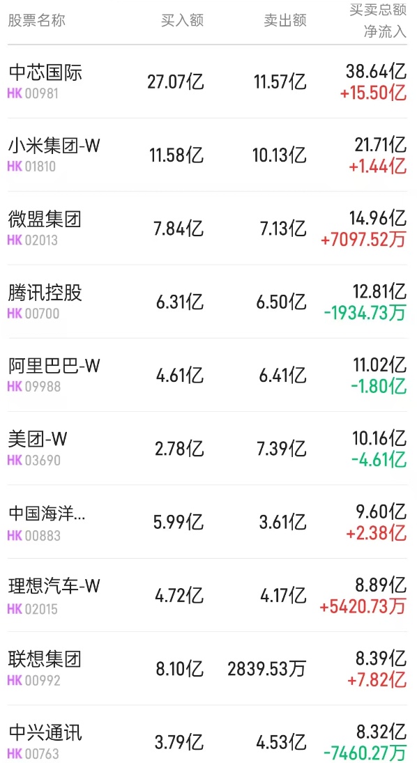 中芯国际(00981)获净买入13.89亿港元。消息面上,半导体行业观察机构TechInsights发布2025年半导体制造市场展望,由于终端需求的改善和价格的上涨,IC销售额预计在2025年将增长26%。高盛指出,继续看好中芯国际作为中国晶圆代工龙头企业,因为其客户对本地化生产的需求不断增长。然而,持续的产能扩张、成熟节点产能供应增加、竞争加剧、地缘风险仍是估值的担忧及悬念。