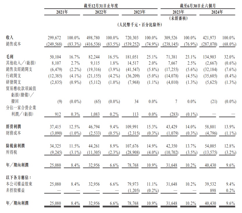 财务方面,2021年度、2022年度、2023年度以及2024年截至6月30日止六个月,新吉奥房车实现收入分别约人民币3亿元、4.99亿元、7.2亿元以及4.22亿元;同期年内利润分别为约人民币2508万元、3295.6万元、7876.8万元以及4043万元。