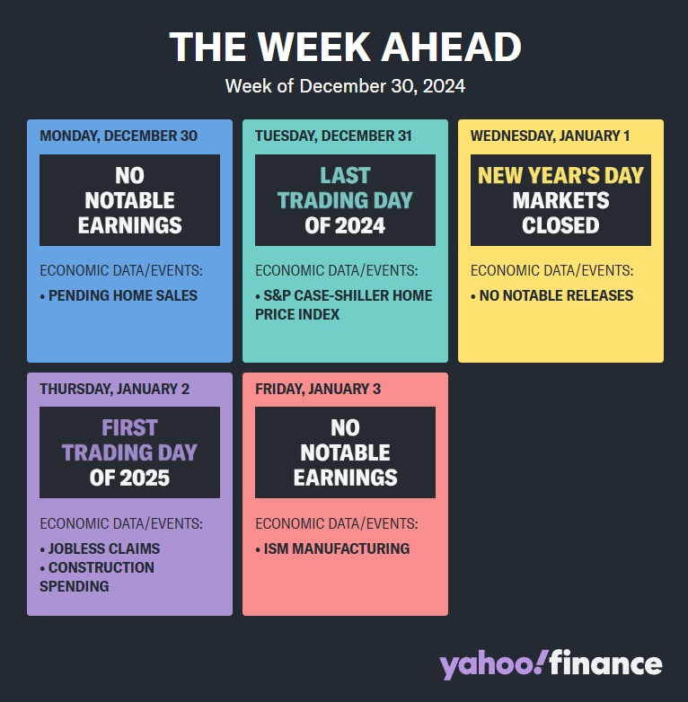 受假日影响,投资者将迎来一个假期缩短的交易周,市场消息有限。周三市场将因元旦休市,并且没有大公司将公布季度业绩。