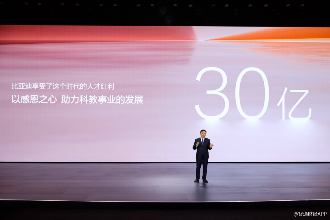 比亚迪捐资30亿教育慈善基金,助力中国科教事业发展,为中国汽车产业培养更多卓越人才,推动新能源汽车等科技领域的创新发展,为国家发展汽车新质生产力蓄势赋能,牢筑汽车强国的坚实根基。