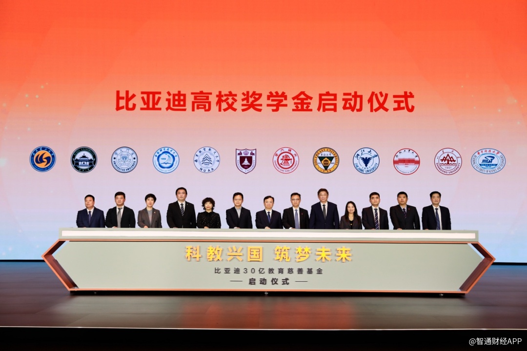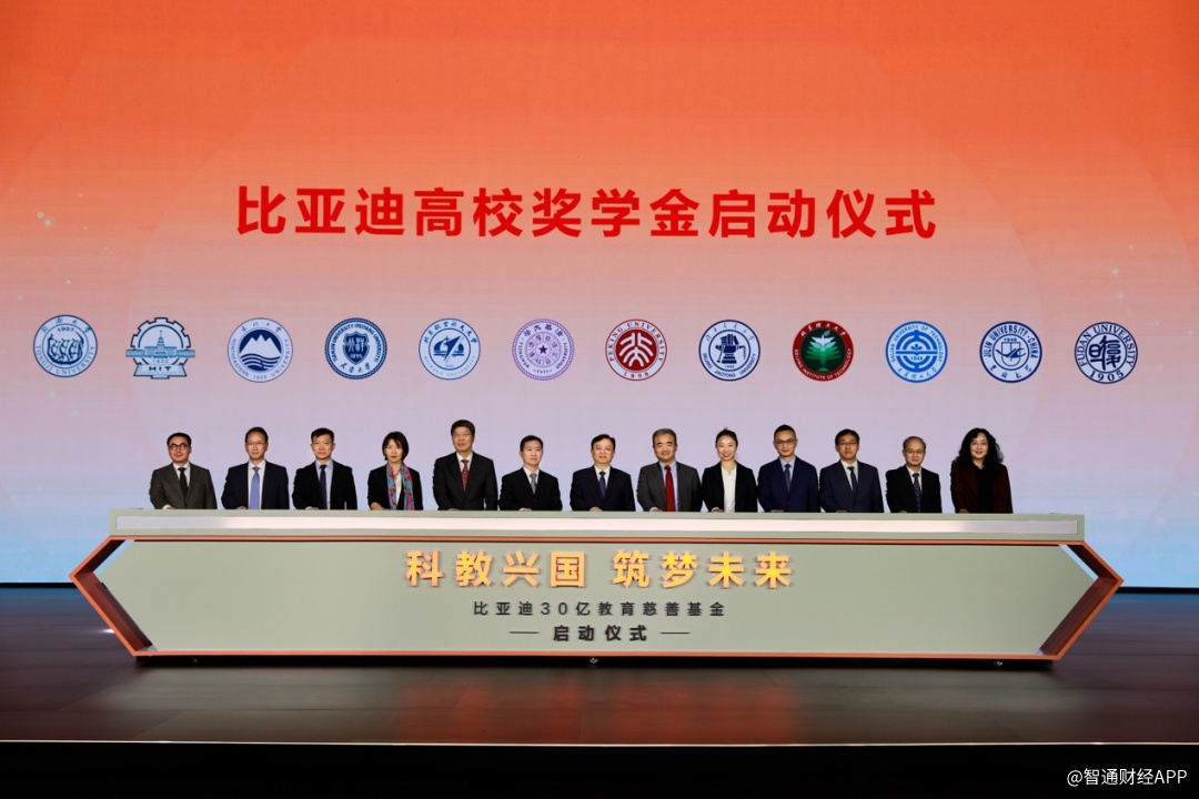 启动仪式上,王传福表示,如果没有科教兴国战略,就不会有比亚迪的今天,也不会有中国新能源汽车的今天,比亚迪感恩国家科教兴国战略,感恩各大高校培养卓越人才。比亚迪捐资30亿聚焦教育慈善,用于高校奖学金及新能源技术科普,助推中国科教事业的蓬勃发展。
