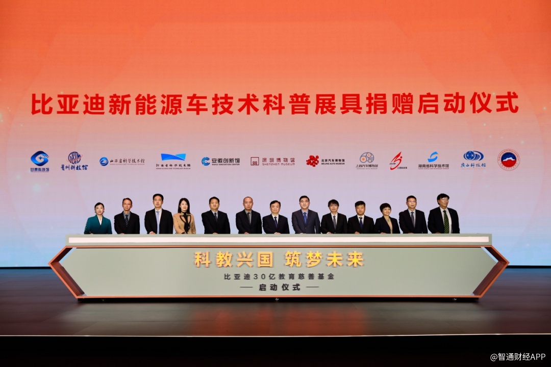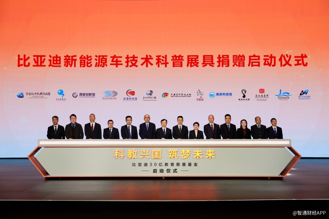 12月30日,比亚迪在深圳总部举行了30亿教育慈善基金启动仪式,比亚迪股份有限公司董事长兼总裁王传福与来自全国的35所高校代表及28所科技馆、博物馆代表共同启动比亚迪30亿教育慈善基金捐赠。