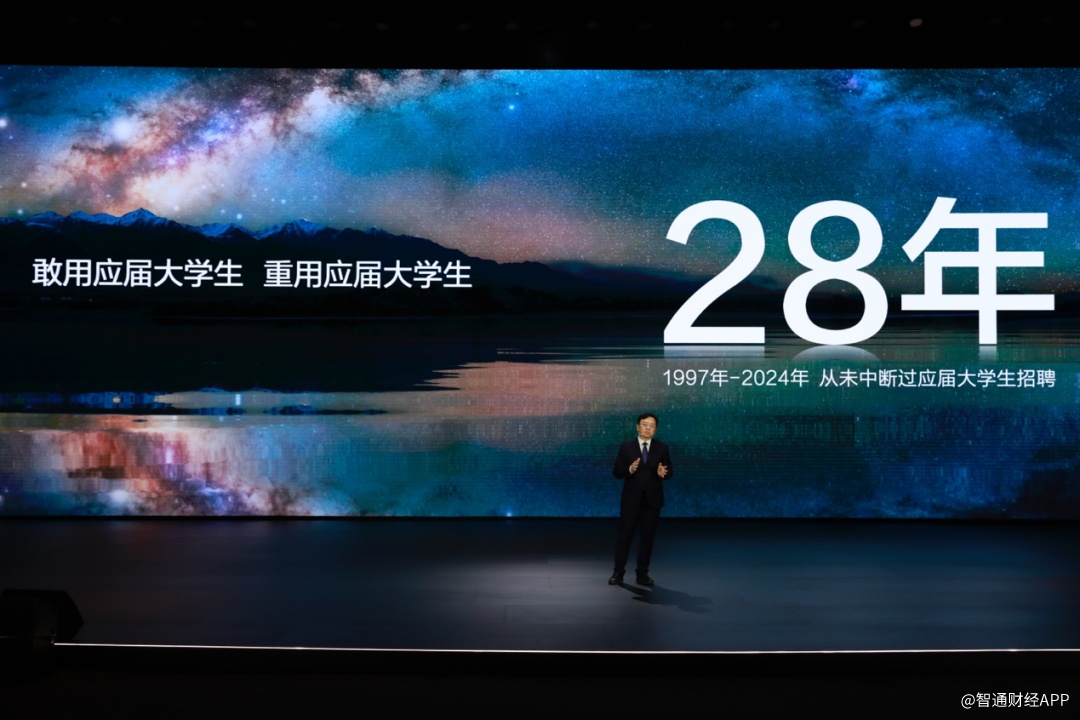 比亚迪敢用应届生、重用应届生、培养应届生。从1997年至今,28年以来,比亚迪从未中断应届大学生招聘。近两三年,比亚迪招收应届大学生数量超过5万,今年的硕士博士占比接近70%,研发人才占比接近80%。比亚迪通过完整的人才培养体系,实现了从学校到社会的“教育接力”。目前,比亚迪超过一半的高管和技术骨干从应届生培养而来,拥有数量庞大的近11万工程师。