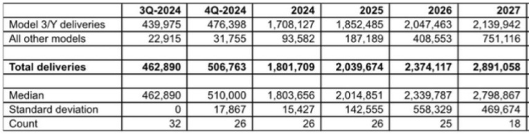 该行表示,新车型,包括预计在今年年初推出的廉价车型和新款Model Y,可能会推动这些数字的增长。