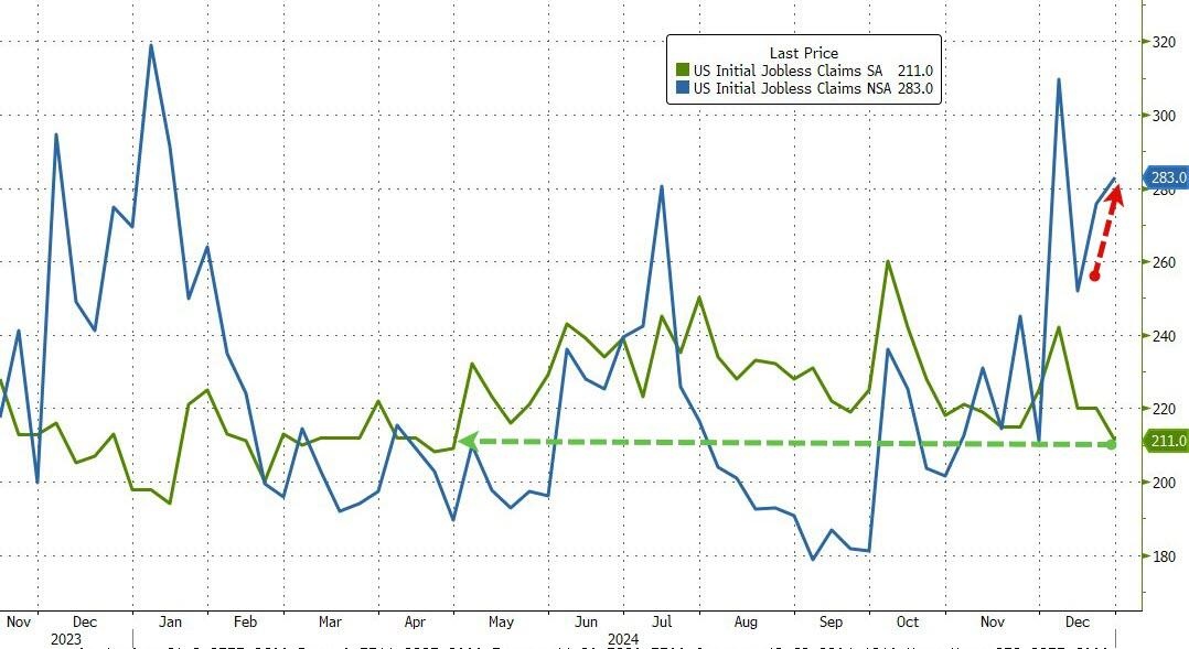 智通财经获悉,美国至12月28日当周初请失业金人数 21.1万人,预期22.2万人,前值由21.9万人修正为22万人。美国至12月21日当周续请失业金人数 184.4万人,预期189万人,前值由191万人修正为189.6万人。美国初请失业金人数降至8个月低点,续请失业金人数也下降至三个月低点,这反映出美国劳动力市场的裁员幅度相对较小,而劳动力市场仍保持着令人惊讶的弹性。