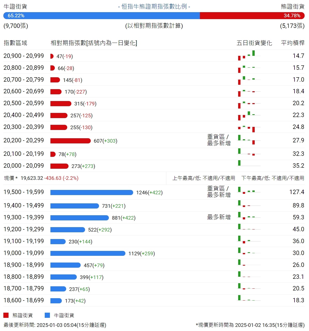 智通财经APP获悉,截至1月3日,恒指最新的牛熊街货比例为65:35。