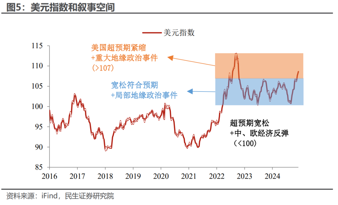 风险提示:美国总统新任期政策超预期,导致全球经济大幅降温,美元指数超预期升值;地缘政治出现超预期波动,流动性问题导致美元超预期冲高。