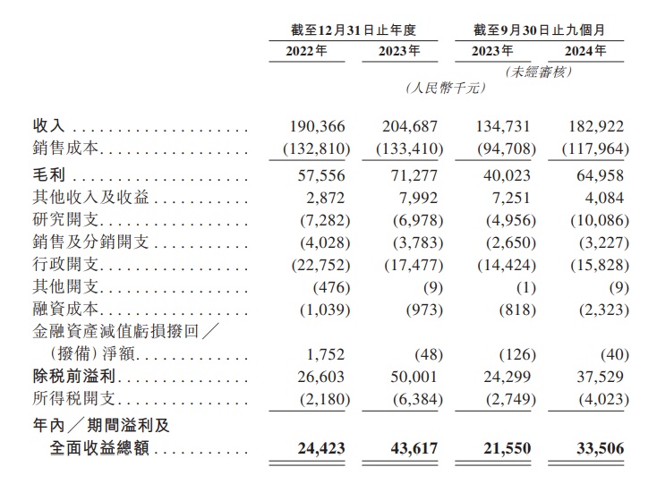 财务方面,于2022年度、2023年度、2023年以及2024年截至9月30日止九个月,金岩高新分别实现收入约为1.90亿元、2.05亿元、1.35亿元、1.83亿元人民币,年/期内溢利及全面收益总额分别为2442.3万元、4361.7万元、2155万元、3350.6万元人民币。