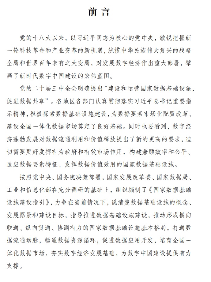 为贯彻落实党的二十届三中全会关于建设和运营国家数据基础设施,促进数据共享的部署要求,国家发展改革委、国家数据局、工业和信息化部组织制定了《国家数据基础设施建设指引》。现印发给你们,请结合实际,因地制宜抓好落实。