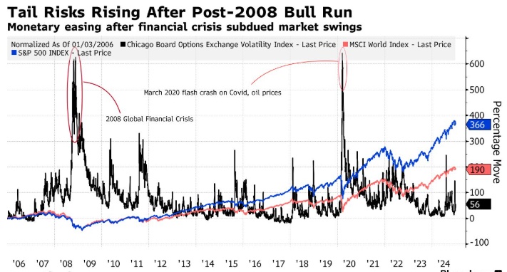 在其他方面,他提到了地缘政治紧张局势加剧等问题。Diggle的公司在一份新基金的营销文件中表示,散户投资者、被动投资基金的日益壮大和高频交易员可能会加剧溃败,就像他们在2020年3月和2024年8月所做的那样。