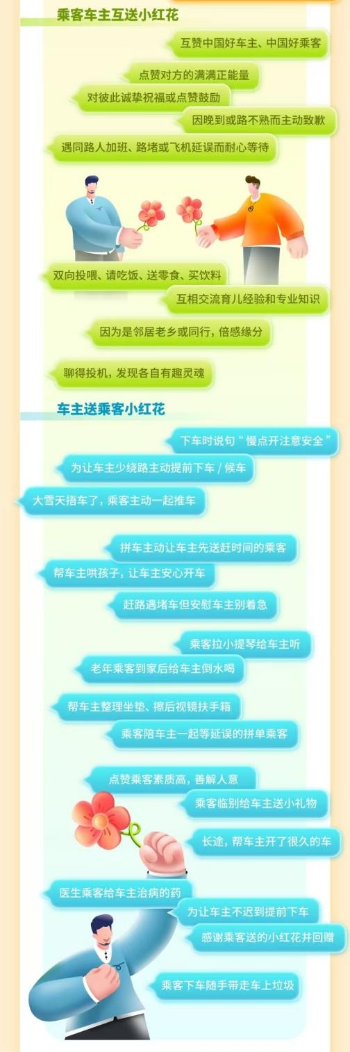 顺风车,基于线上线下结合场景,以及平台信任机制持续强化,让更多陌生同路人之间壁垒慢慢消融,代之以友善、关照、包容和鼓励,并通过嘀嗒小红花增进了善意自然流动,让社会信任微观基础进一步夯实。