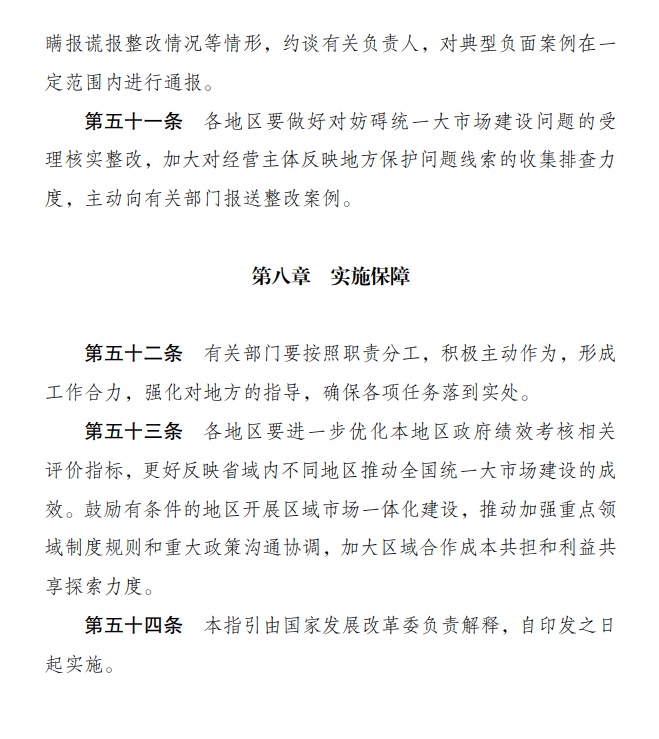 智通财经APP获悉,1月7日,国家发改委发布关于印发《全国统一大市场建设指引(试行)》的通知。其中提到,实行统一的市场准入制度。各地区、各部门要严格落实“全国一张清单”管理模式。地方依法设定的市场准入管理措施,要全部列入全国统一的市场准入负面清单管理。维护统一的公平竞争制度。各地区、各部门要严格落实《公平竞争审查条例》,按照法定审查程序、审查标准开展公平竞争审查工作,严格落实审查主体责任,防止出台或实施妨碍公平竞争的政策措施。