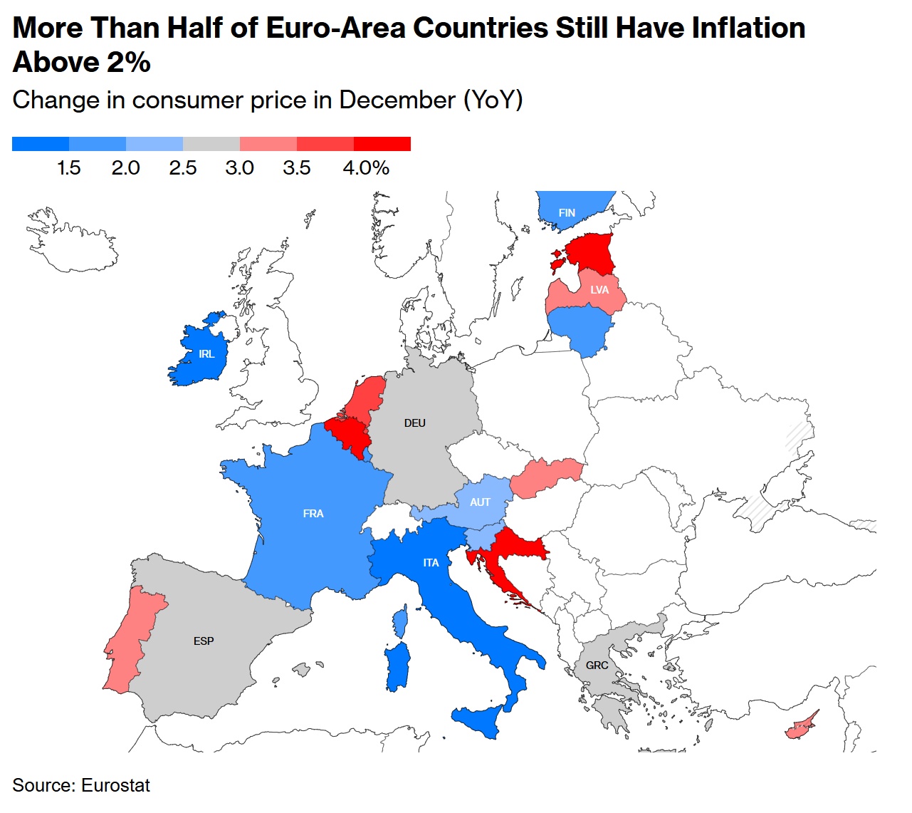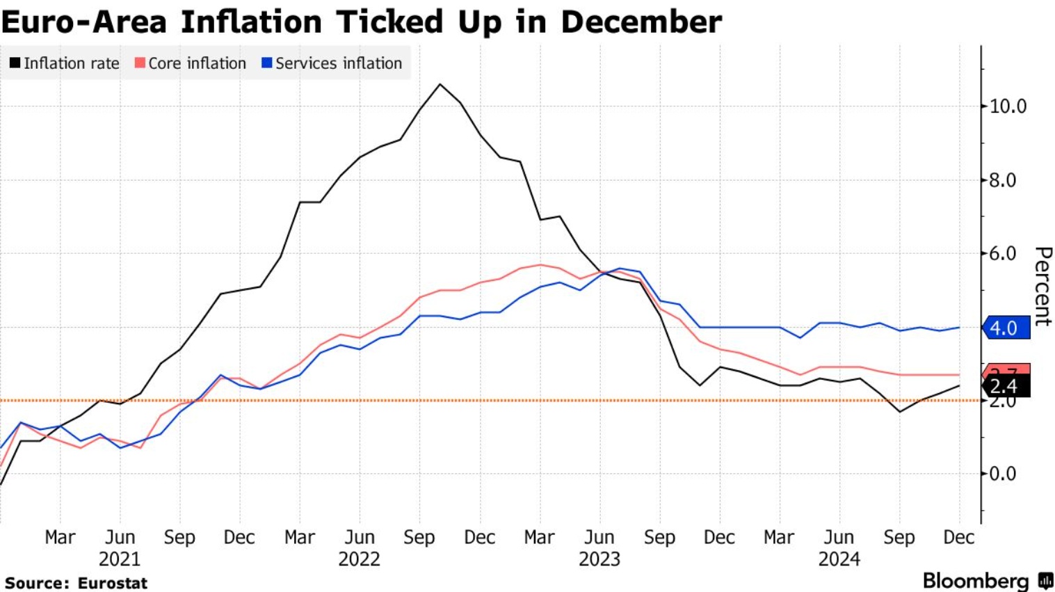 欧洲央行此前已多次警告,通胀率的回升并不意外,且彭博经济预测显示1月份通胀率将维持在2.4%。