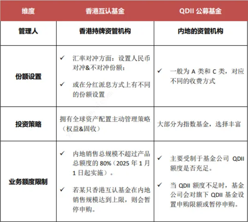 中金财富也认为,由于在策略和产品额度上的不同特点,相较QDII,互认基金更适合全球资产配置主动管理策略的投资人群。