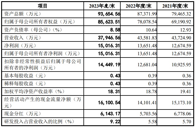 财务方面,于2021年、2022年、2020年,赛克赛斯营业收入分别为4.37亿元、4.36亿元、3.79亿元人民币,同期,公司净利润分别约为1.27亿元、1.37亿元、1.5亿元人民币。