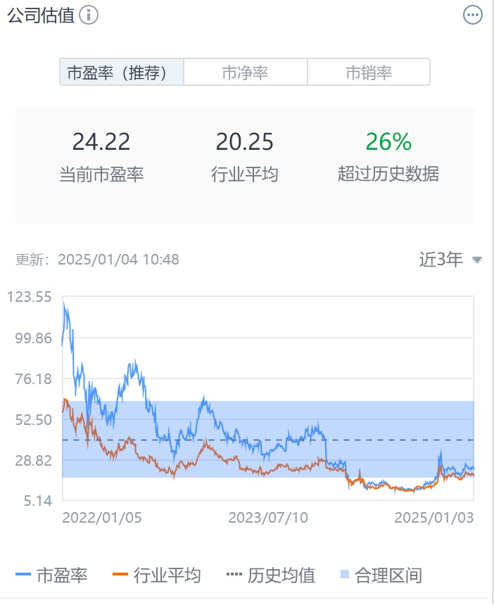 实际上,目前二级市场对公司估值反弹预期较高。股价方面来看,去年下半年以来,公司整体股价走势呈现出持续向好的局面,2024年9月至12月,股价累计涨幅达58.21%,居行业前列。在强劲的股价反弹势头带动下,去年下半年,前期出现超跌的药明生物的PE估值反弹迅速,当前公司PE估值为24.22倍,已达行业平均水平。