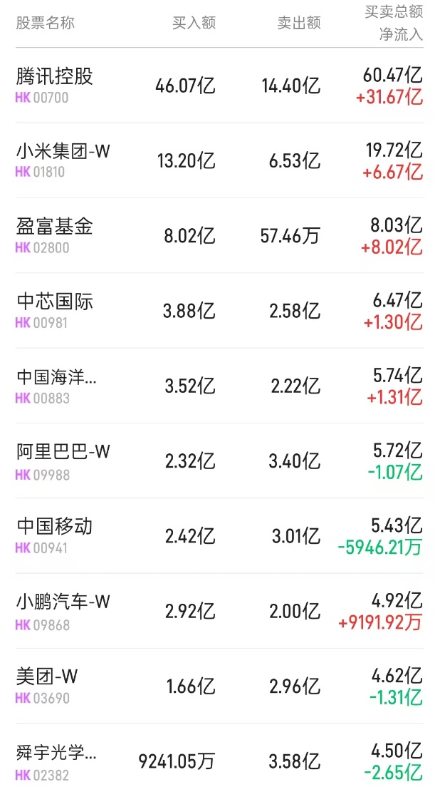 腾讯(00700)获净买入84.95亿港元。消息面上,腾讯被美国国防部纳入中国军工企业名单。花旗发表报告指,理解市场的恐慌反应,但认为腾讯被列入名单不一定意味着有足够证据证实是正确的决定。该行相信腾讯将努力与美国国防部合作,以解决任何误解,并注意到去年有几家公司在提供有效解释后成功从名单中剔除。星展表示,腾讯的商业模式主要围绕社交网络和线上游戏,并非国企且未参与重大军事项目,认为有很大机会之后会从名单上除名。