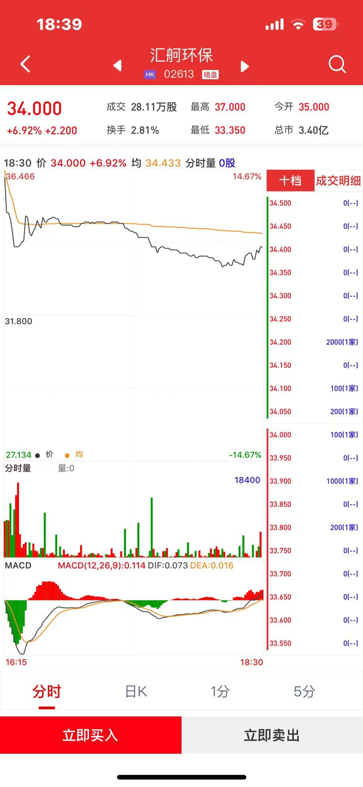 智通财经APP获悉,汇舸环保(02613)将于1月9日(周四)在香港挂牌。截至收盘,利弗莫尔证券暗盘交易显示报价34港元,较招股价31.80港元上涨6.92%,每手100股,不计手续费,每手赚220港元。