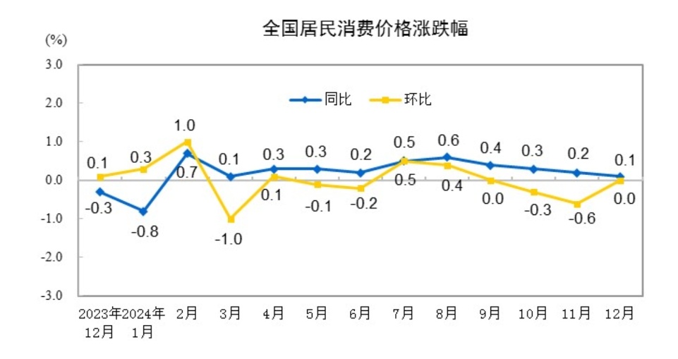 2024年12月份居民消费价格同比上涨0.1%