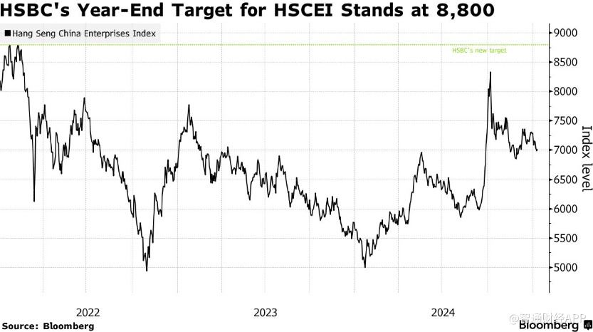 汇丰将2025年恒生国企指数年终目标位上调至8800点