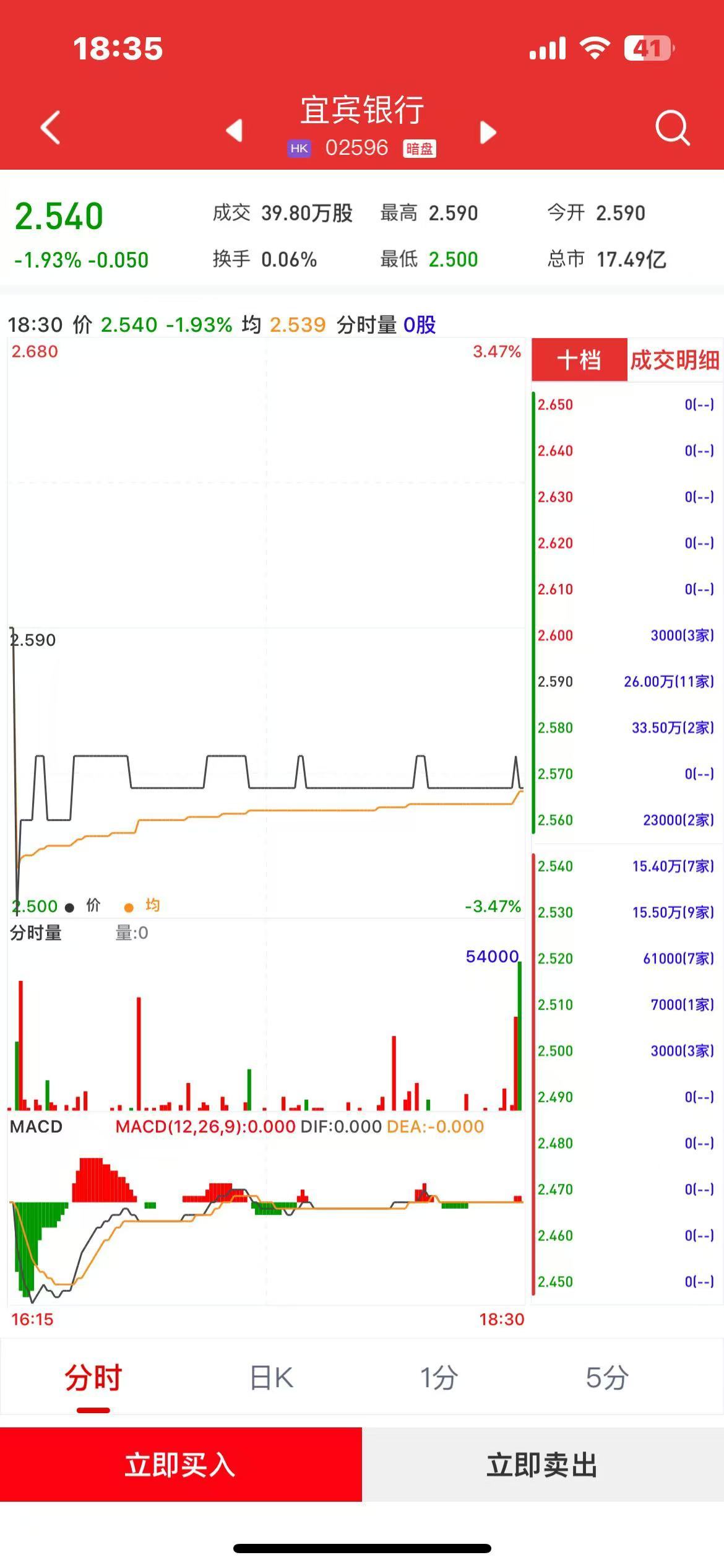 智通财经APP获悉,宜宾银行(02596)将于1月13日(周一)在香港挂牌。截至收盘,利弗莫尔证券暗盘交易显示报价2.54港元,较招股价2.59港元下跌1.93%,每手1000股,不计手续费,每手亏50港元。