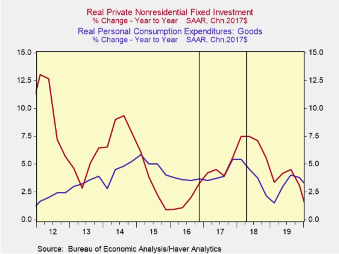 从特朗普第一任期来看,其政策对经济产生了复杂而深远的影响。首先,在2017年的减税法案和去监管措施共同作用下,企业信心、企业投资(见图1)和实际GDP均实现了大幅增长。这种有利的经济形势一直持续到2018年。