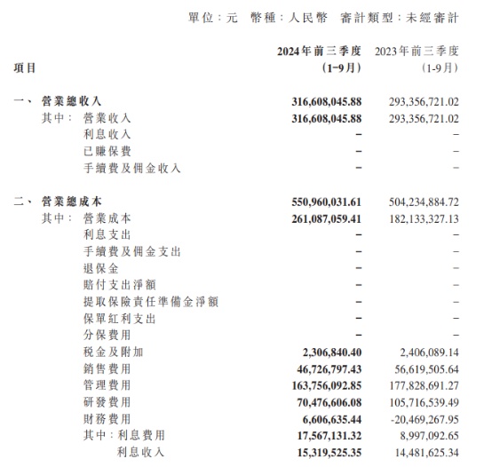 成本费用方面,公司前三季度营业成本为2.61亿元,同比增长43.35%;其中,研发费用从去年同期的1.05亿元下降至7047万元,出现明显下滑。