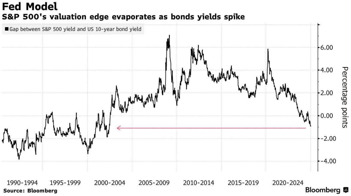 投资者已经看到了这一点。标普 500 指数的收益率比 10 年期美国国债收益率低 1 个百分点,这种情况上一次出现还是在 2002 年。换句话说,持有比美国股票基准风险低得多的资产的回报很久没有这么好了。