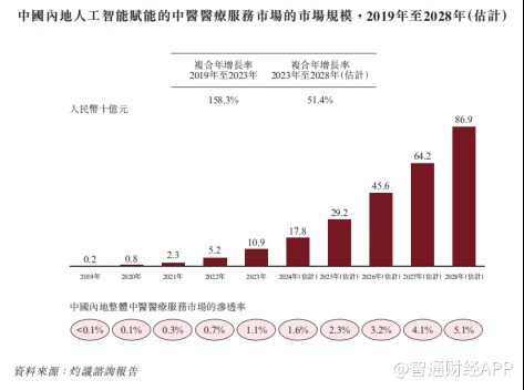 近年来,人工智能赋能的中医医疗服务市场经历快速成长,就收入而言,预计于2023年
