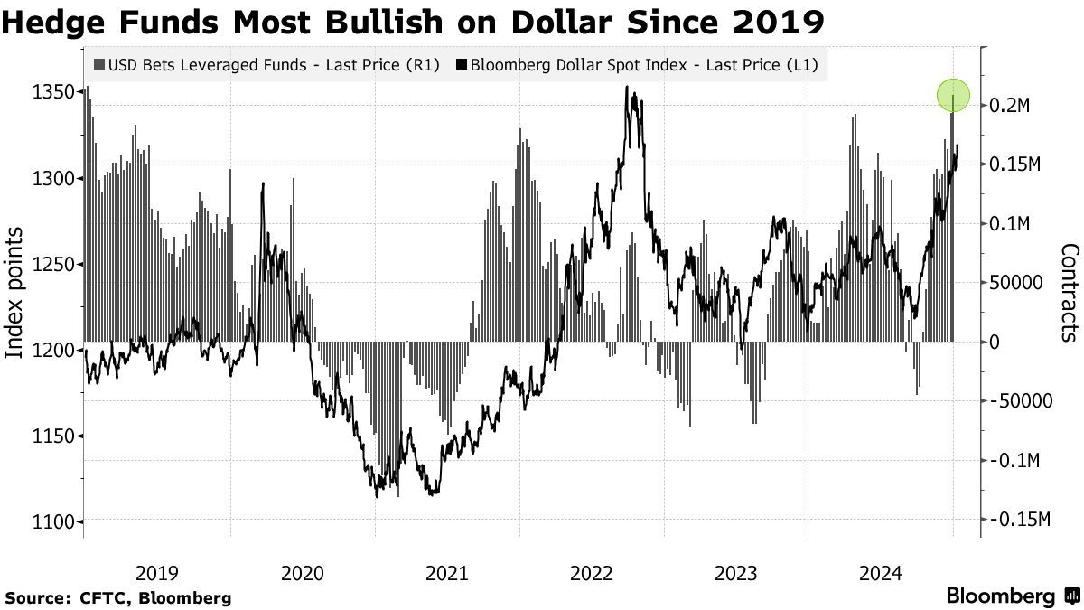 美国商品期货交易委员会(CFTC)的数据显示,包括对冲基金在内的投资者似乎支持对美元的乐观看法,看涨美元的头寸目前处于2019年1月以来的最高水平。