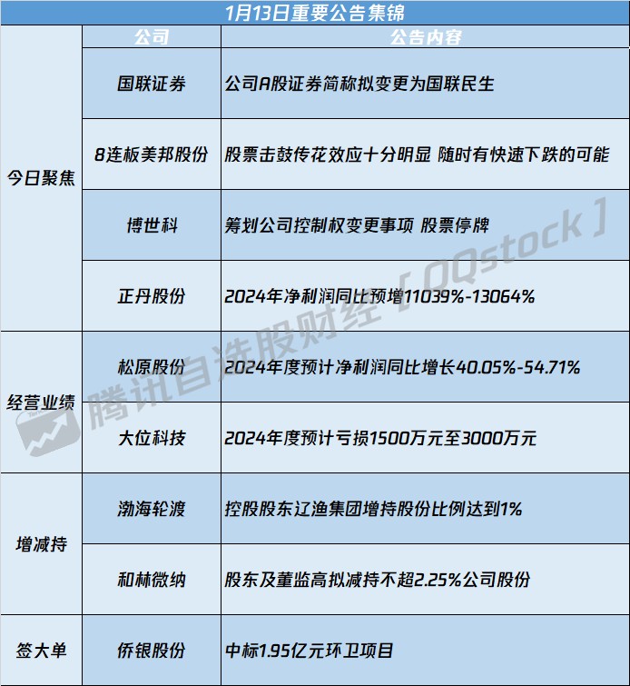 博世科公告,公司控股股东宁国国控因筹划重大事项,可能导致公司控股股东及实际控制人发生变更。为保证公平信息披露,维护投资者利益,避免公司股价异常波动,公司股票自1月14日开市起停牌,预计停牌时间不超过2个交易日。本次交易完成后,交易对手方将获得公司不超过总股本29.9%的股份对应的表决权,交易对手方属于化学原料和化学制品制造行业。目前各方正在就具体变更方案等进行论证和磋商。本次交易事项能否最终实施完成及实施结果尚存在不确定性。