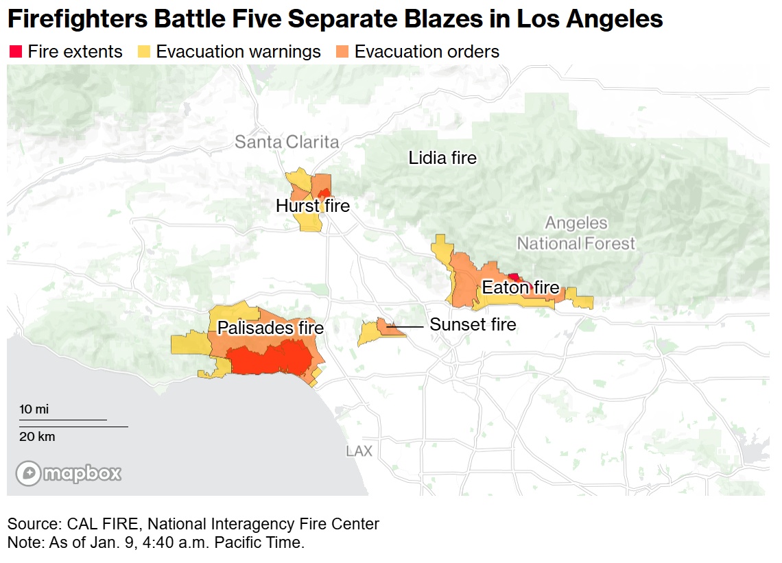 摩根大通分析师表示,火灾预计将造成200亿美元的保险损失,这一数字凸显了此次灾难的严重性。