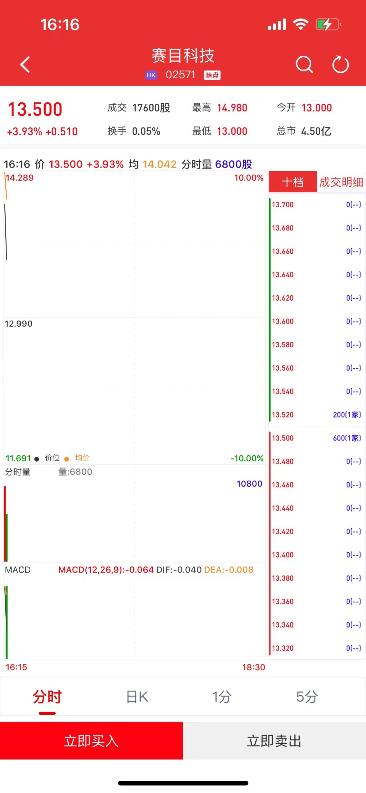 智通财经APP获悉,赛目科技(02571)将于1月15日(周三)在香港挂牌。截至发稿,利弗莫尔证券暗盘交易显示报价13.5港元,较招股价12.99港元上涨3.93%,每手200股,不计手续费,每手赚102港元。