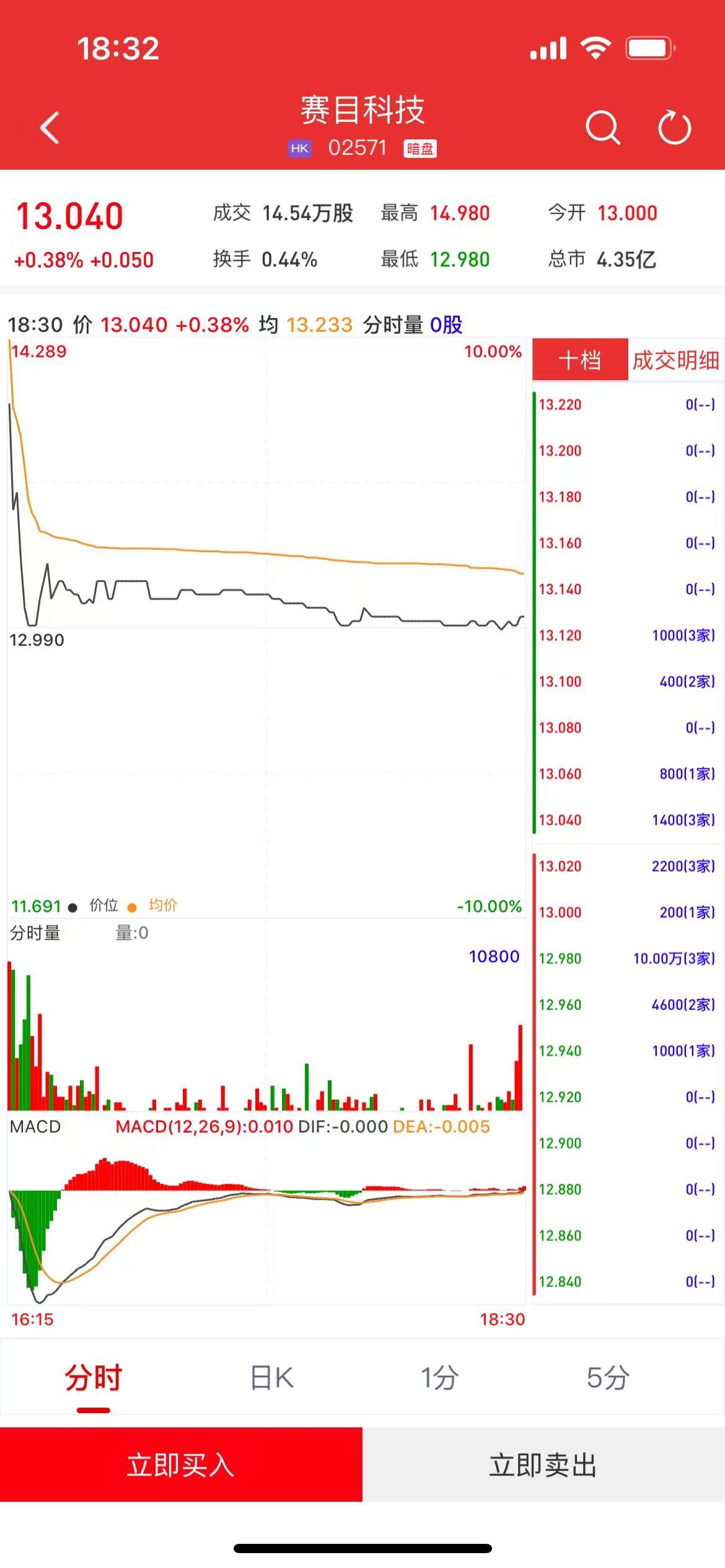 智通财经APP获悉,赛目科技(02571)将于1月15日(周三)在香港挂牌。截至收盘,利弗莫尔证券暗盘交易显示报价13.04港元,较招股价12.99港元上涨0.38%,每手200股,不计手续费,每手赚10港元。