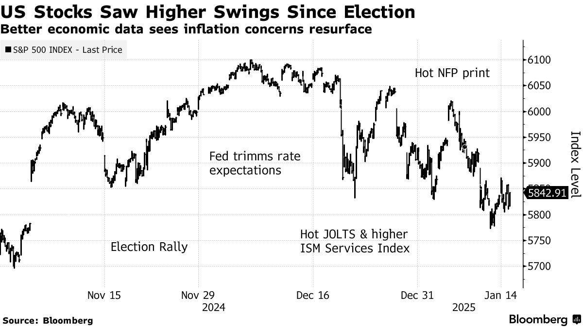 此前一系列稳健的经济数据导致市场对美联储降息的预期有所降温,标普500指数今年迄今为止下跌了0.7%,同时引发了美债收益率的上升和美股盘中的波动加剧。
