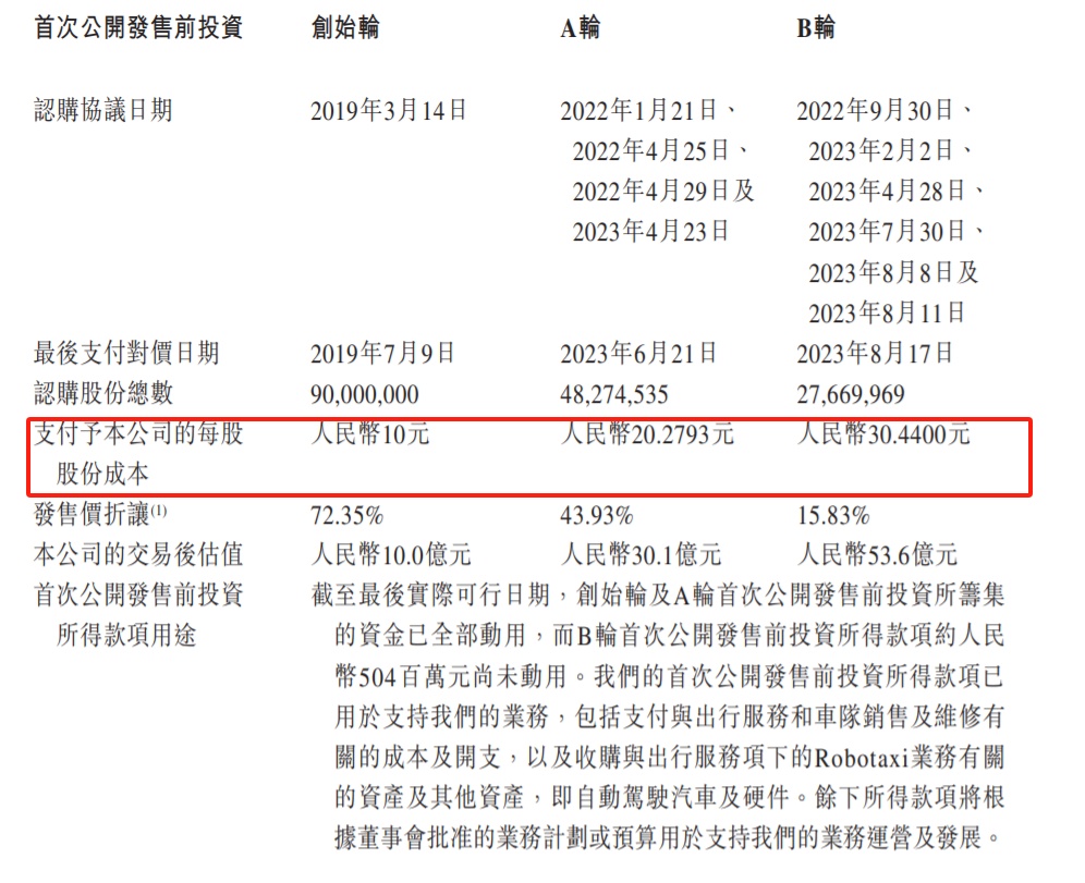 这就意味着,若以10.02港元计算,如祺出行在创始轮引进的投资者已小幅亏损,A轮、B轮引进的投资者早已深套,而基石投资者近乎仅半年多本金便只剩不到30%。