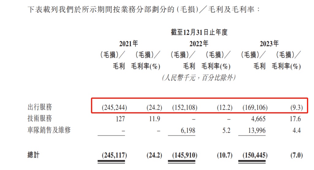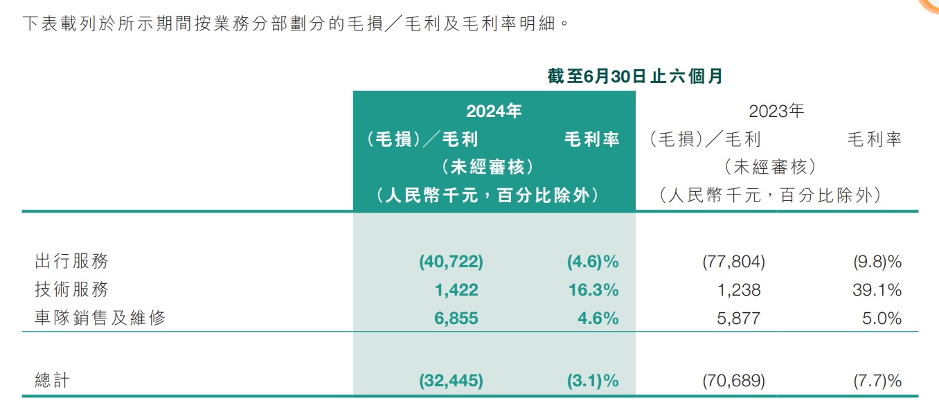 而报告期内公司的整体毛利率提升至了-3.1%,较2023年同期提升4.6个百分点,这主要是因为出行服务的毛利率从2023年同期的-9.8%提升至-4.6%。如祺出行表示,出行服务毛利率的改善是因为公司向客户、司机提供的奖励减少,以及向运力加盟商支付的管理费用降低(通过免费提供专有车辆及司管系统的访问权限以及为运力加盟商提供培训等服务从而实现)。